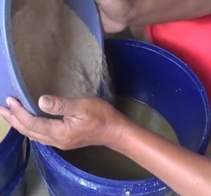 - Masukkan bekatul kedalam cairan EM2 dalam wadah pemrosesan dan di aduk rata.