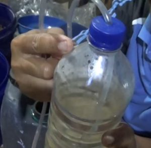 - Isi botol bekas air mineral tadi dengan minimal setengahnya, agar ujung selang dapat terendam.